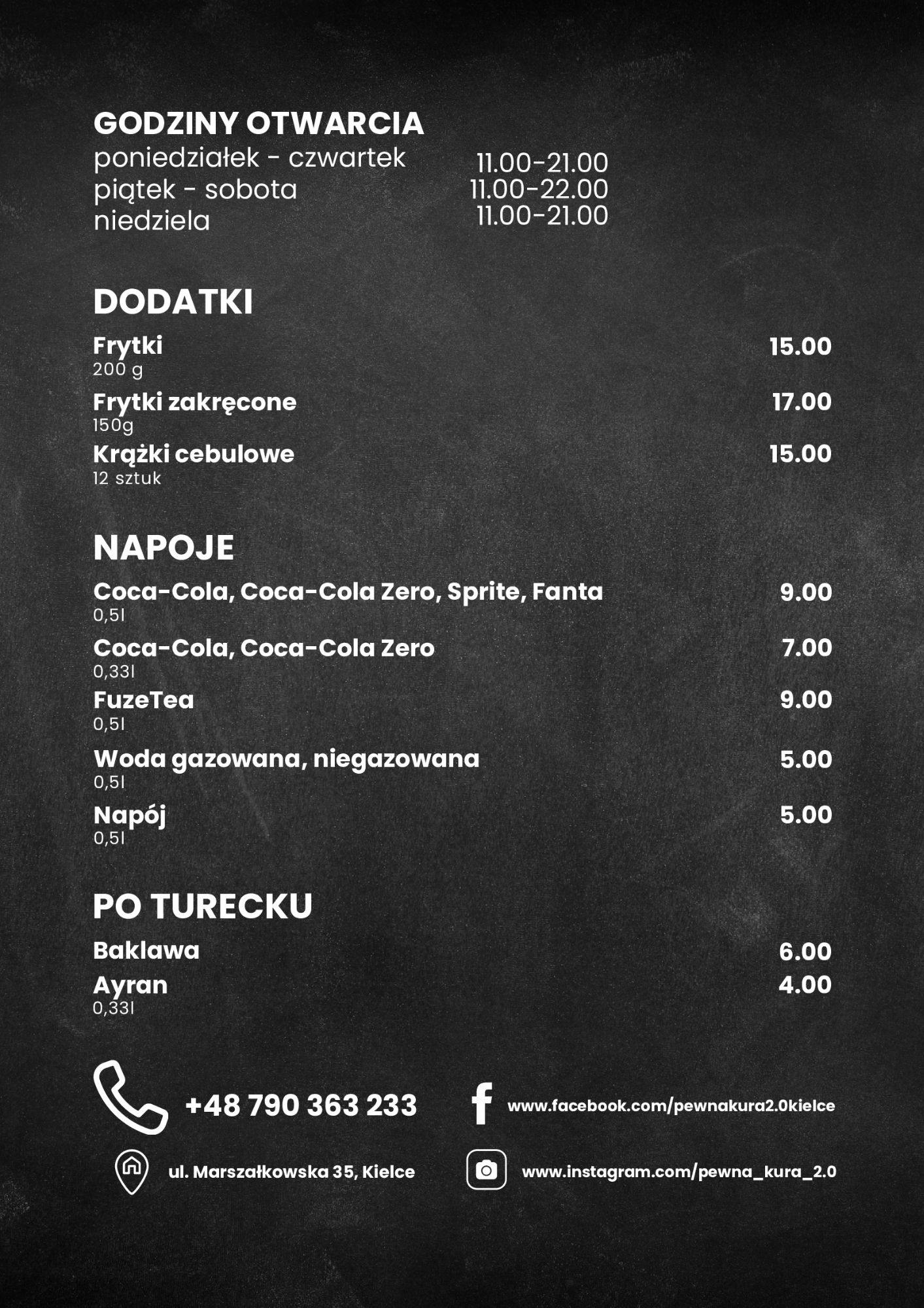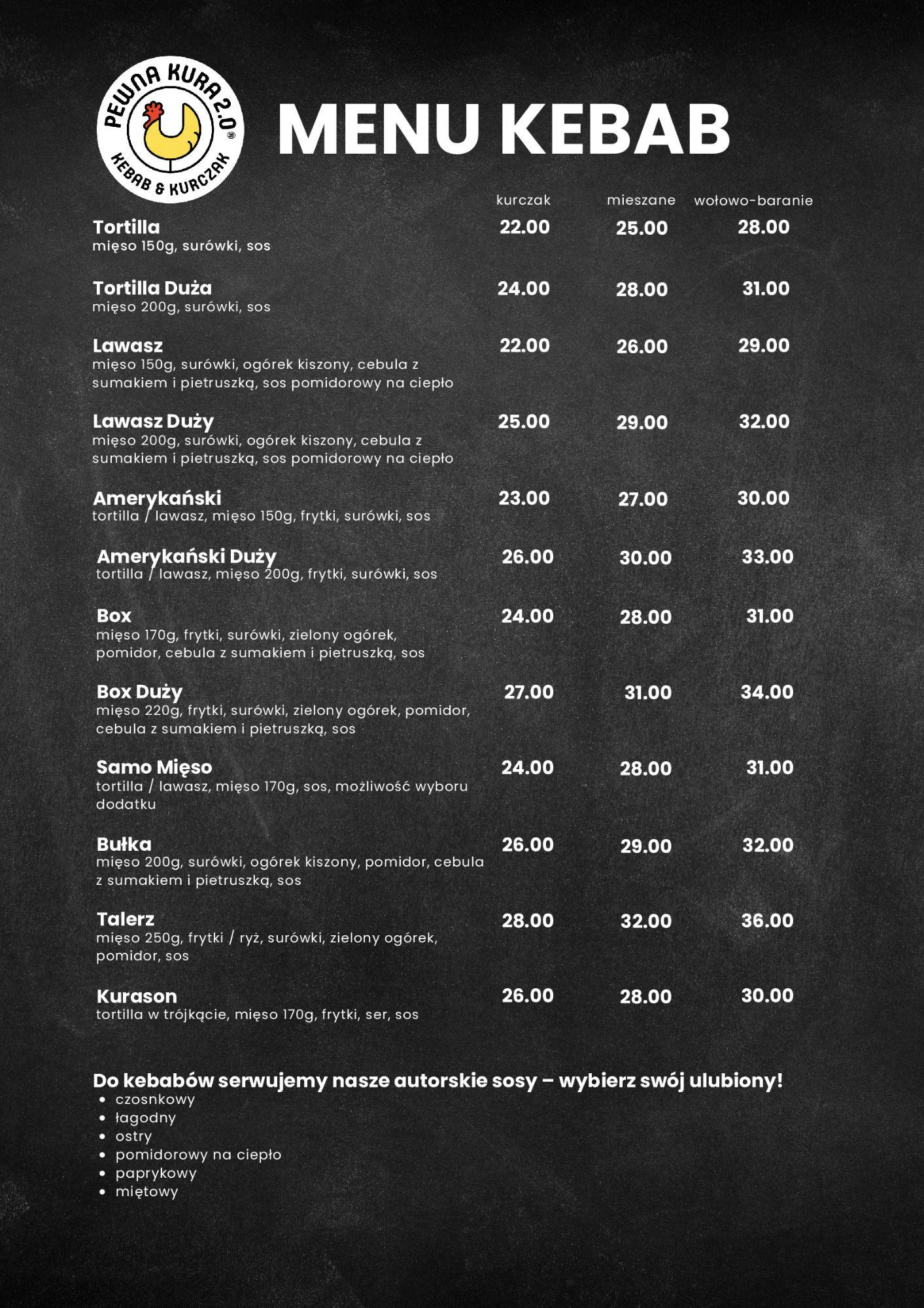 Zachwyć się panierką Pewnej Kury, która pokrywa skrzydełka serwowanej w naszej rodem zza Oceanu oraz naszym kebabem pachnącym Bliskim Wschodem.